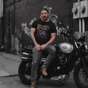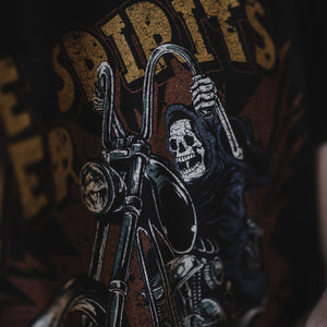 The first tee shirt to drop as part of our Steeltown Cycles collection and we're not messing around. Designed with plenty o' grunge for that vintage band tee vibe and printed locally with a custom-thinned ink for softness, our Reaper Tee is guaranteed to go the extra mile with you this season.