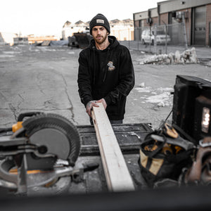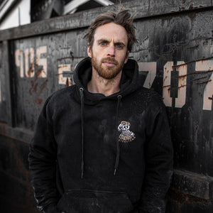 Our famous Working Class Stiff now has a new job: keeping you warm! This 13.8 oz heavy pullover has a double fleece lined hood and sports our now iconic Working Class Stiff graphic. Available in unisex sizes XS - 3XL.