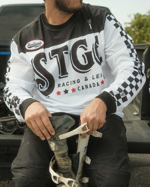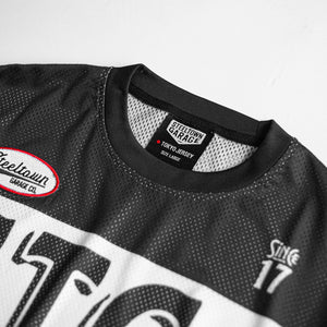 We're planning on doing a lot more ripping around in the dirt with friends this summer, so we thought it was about time to design a retro-inspired, super lightweight Steeltown Moto jersey so that we can all do it in style!