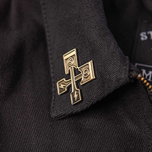 Ya. You bet. We sell our Antique Brass Piston Pin online for $15. But if you order a Shop Coat, you get one for free already pinned right onto the collar.