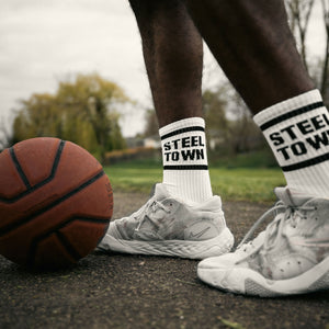 If yer looking for that special touch to finish of yer Steeltown outfit, these cotton crew socks are just the ticket. Manufactured in small batches from a properatiary blend of cotton, spandex and elastic, our Steeltown crew socks are stylish, durable and comfortable all the same time.